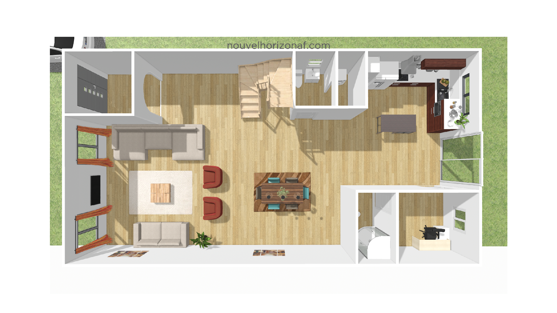 Ce plan est notre modèle de base. Nous travaillons avec vous pour faire de votre maison celle qui vous ressemble.